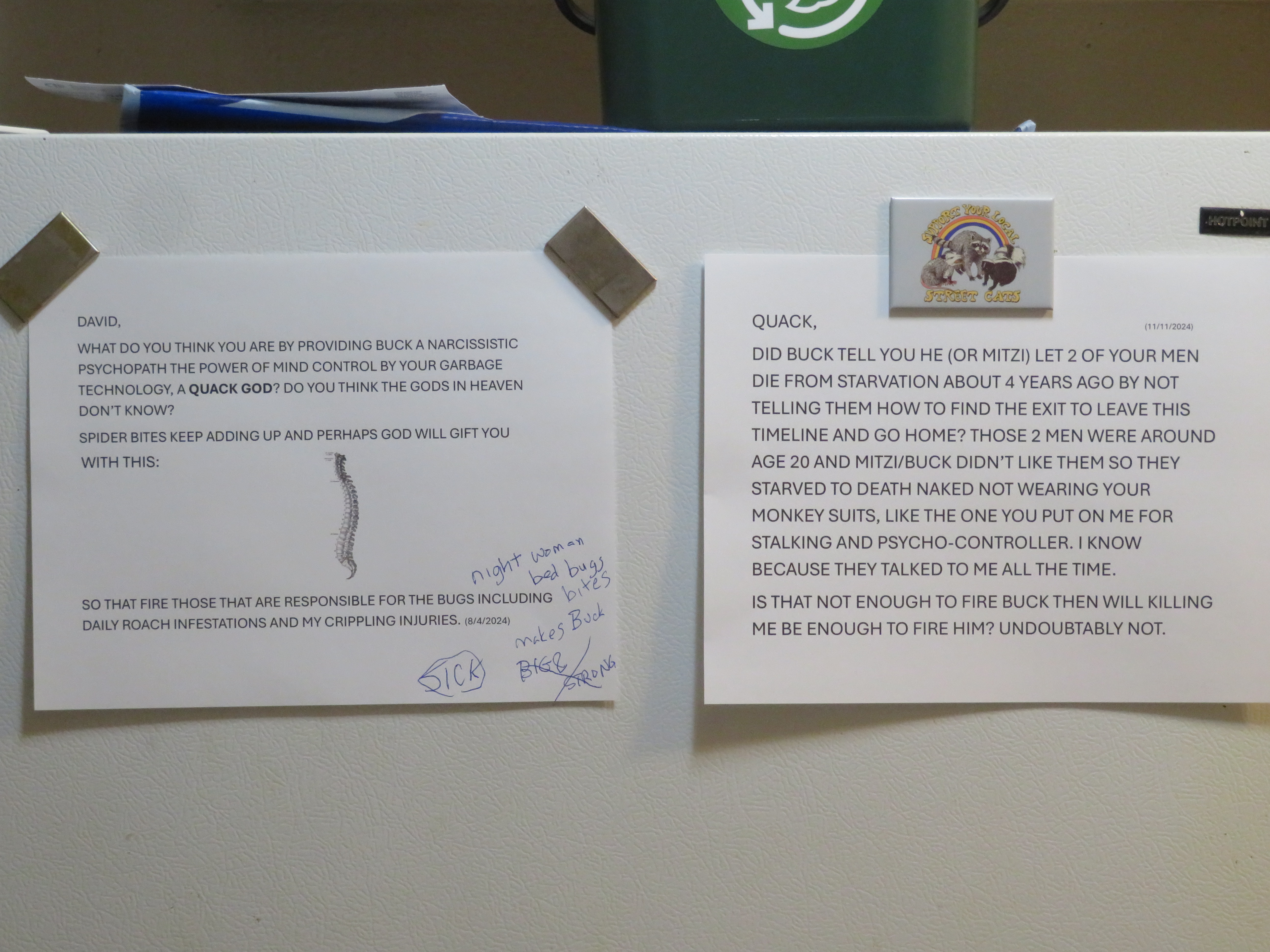 Since the Lennie hiring they began obtaining pet lizard-feeding roaches and releasing bugs in and out of portals mostly in the kitchen and bathroom for harassment, as well as ongoing spider bites and seasonal bed bug bites obtained from Becky. It’s apparently fun to watch me kill bugs and they often demand I talk to them as an excuse for the bugs, a psycho-killer fantasy.